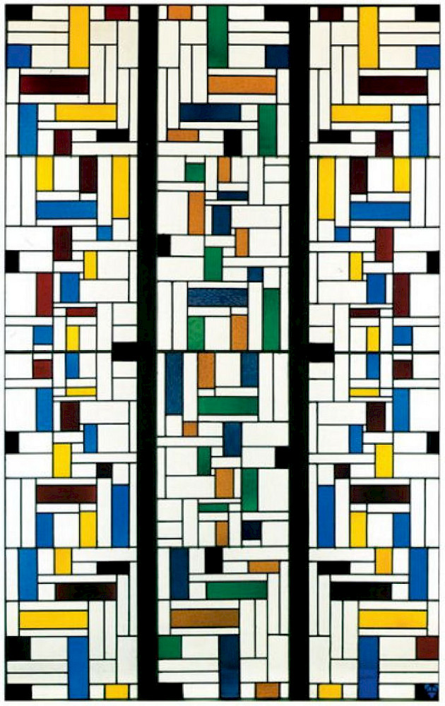 Mondrian focused on painting, but van Doesburg along with other De Stijl artists became involved in more practical projects, which would promote spiritual values by extending the language of painting into the everyday environment.