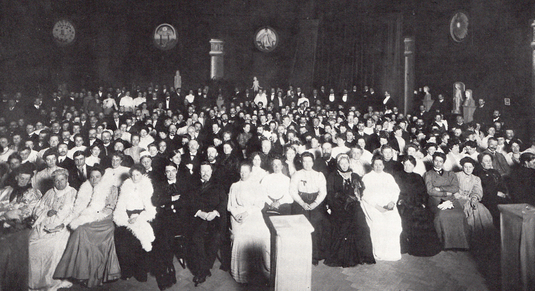 01907 Congress of the Theosophical Society in Munich. Rudolf Steiner is sitting in the first row next to Marie Steiner.